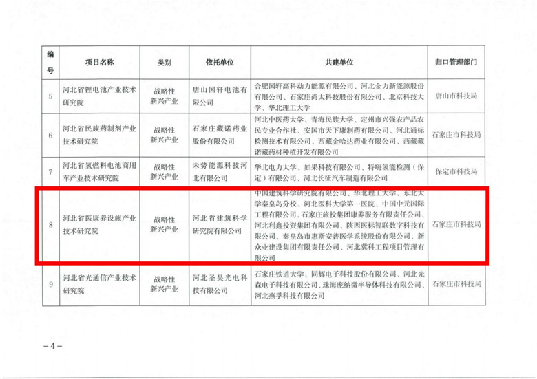 為深入貫徹落實黨的二十大精神,深入踐行“健康中國”戰(zhàn)略,立足醫(yī)康養(yǎng)融合高效發(fā)展,探索醫(yī)康養(yǎng)全產(chǎn)業(yè)鏈優(yōu)質(zhì)高效發(fā)展的路徑和舉措,河北省建筑科學研究院有限公司牽頭發(fā)起成立的河北省醫(yī)康養(yǎng)設施產(chǎn)業(yè)技術(shù)研究院近日通過河北省科學技術(shù)廳審批。